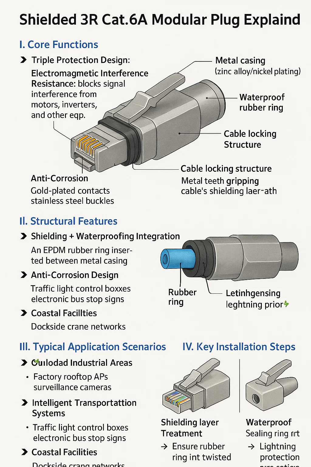 Afskærmet 3R Cat.6A modulstik Forklaret