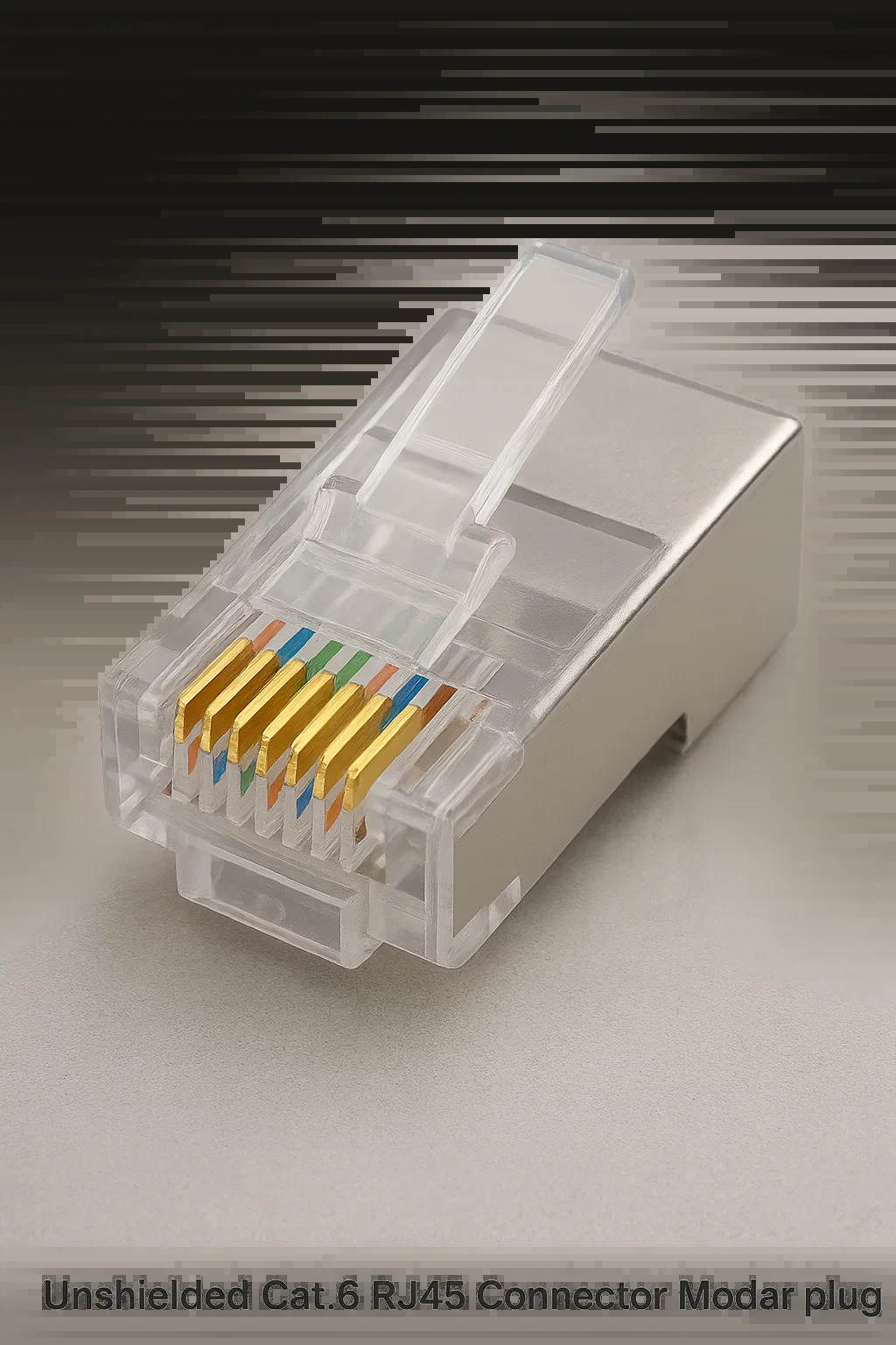 Ingen beskyttende kappe: "Uafskærmet" betyder, at selve stikket og indersiden af netværkskablet, det tilsluttes, ikke har en metalfolie eller flettet mesh som et ekstra isoleringslag for at modstå ekstern elektromagnetisk interferens (såsom støj fra lys, motorer eller andre ledninger).